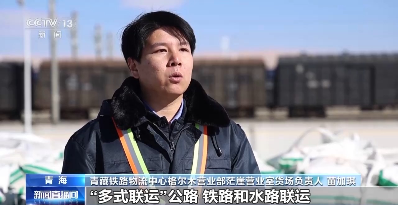 青藏铁路物流中心格尔木营业部茫崖营业室货场负责人 苗加琪:“多式联运”公路、铁路和水路联运,关键是铁路,钾肥专列从这里出发,运往全国各地。