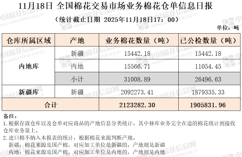 【仓单日报】CNCE业务棉花信息(11.18)