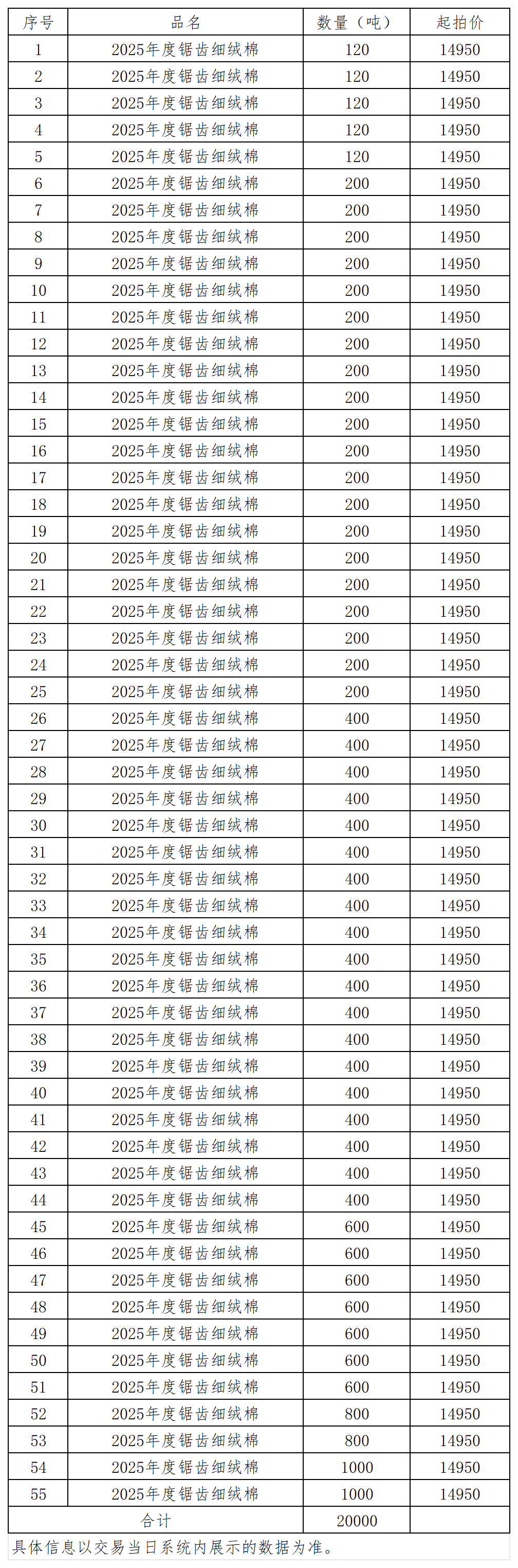 根据《关于发布2025年中棉集团商品棉竞买交易专场相关事项的通知》规定,现将12月25日商品棉竞买部分交易信息预告如下: