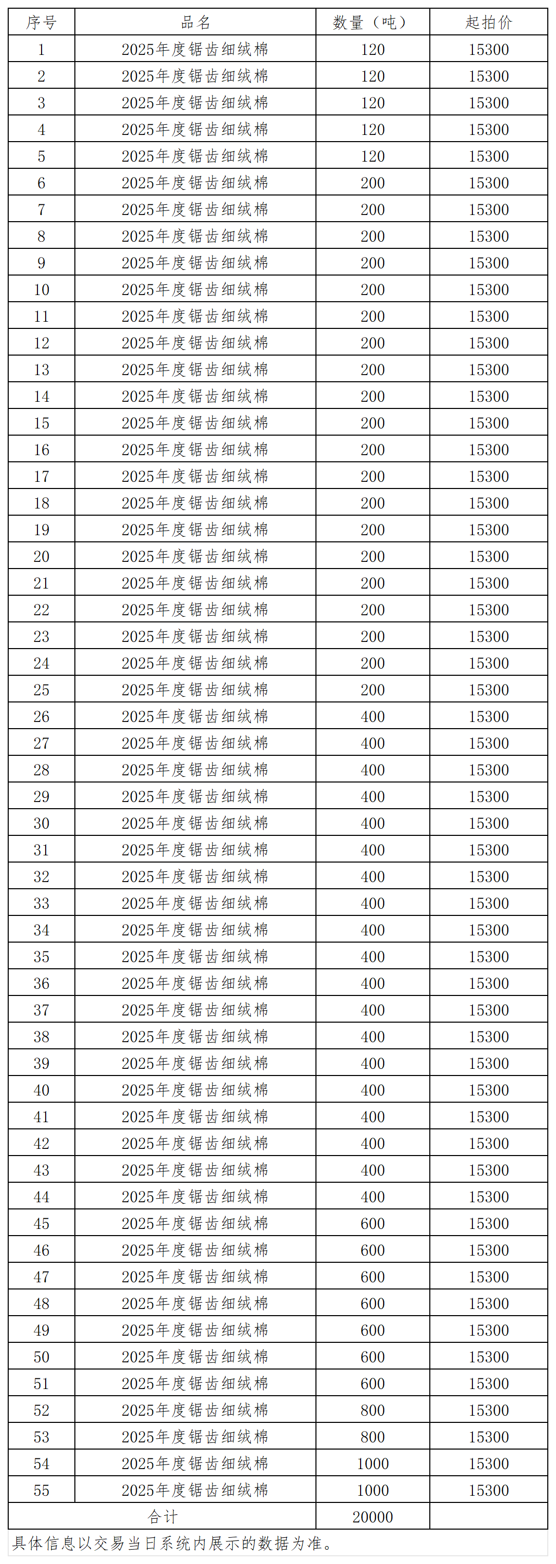 12月31日竞买交易为一口价竞价模式,2025年度标准级商品棉竞买起拍价15300元/吨。