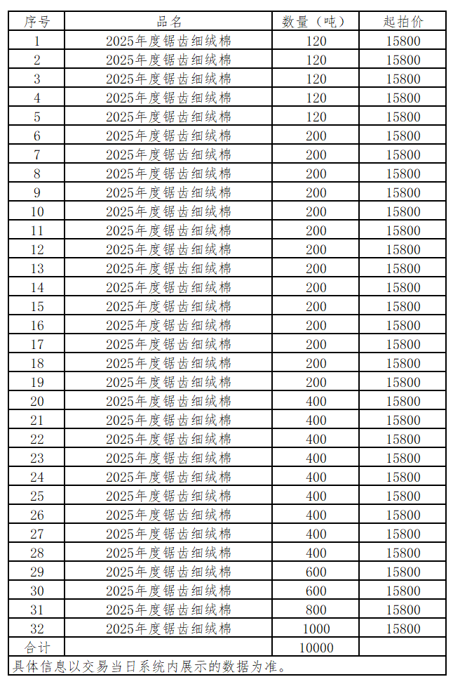 2月6日竞买交易为一口价竞价模式,2025年度标准级商品棉竞买起拍价15800元/吨。