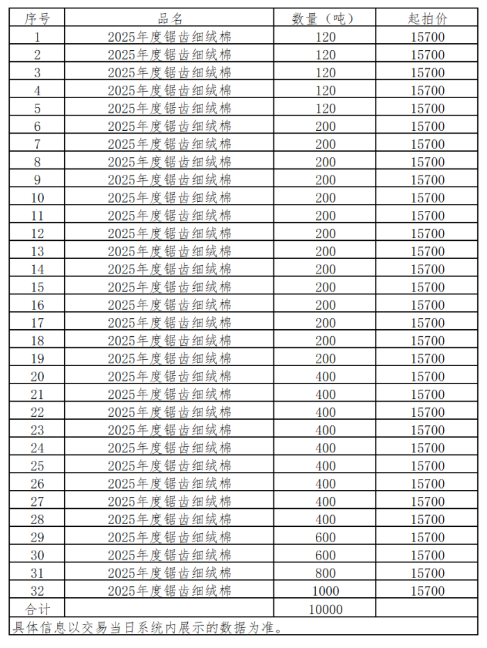 2月10日竞买交易为一口价竞价模式,2025年度标准级商品棉竞买起拍价15700元/吨。