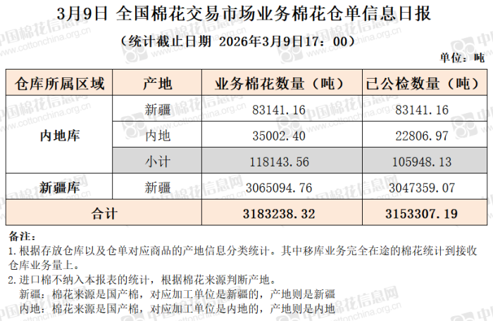 【仓单日报】CNCE业务棉花信息(3.9)