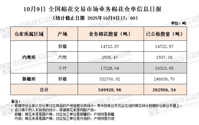 【仓单日报】CNCE业务棉花信息(10.9)