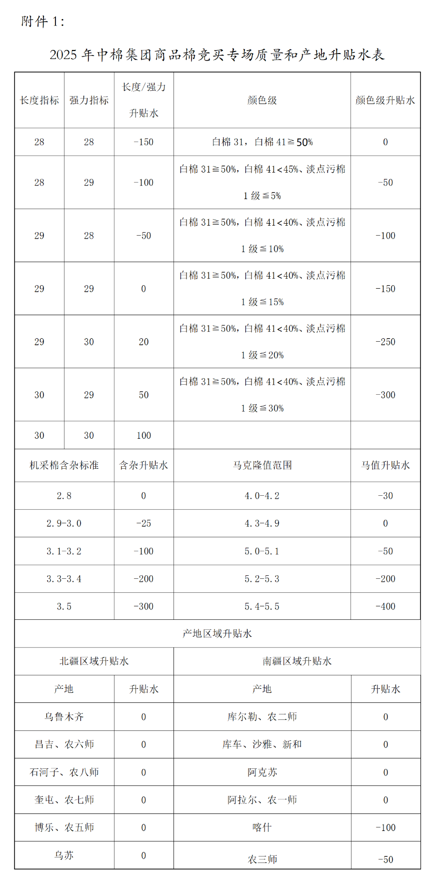 1.2025年中棉集团商品棉竞买专场质量和产地升贴水表