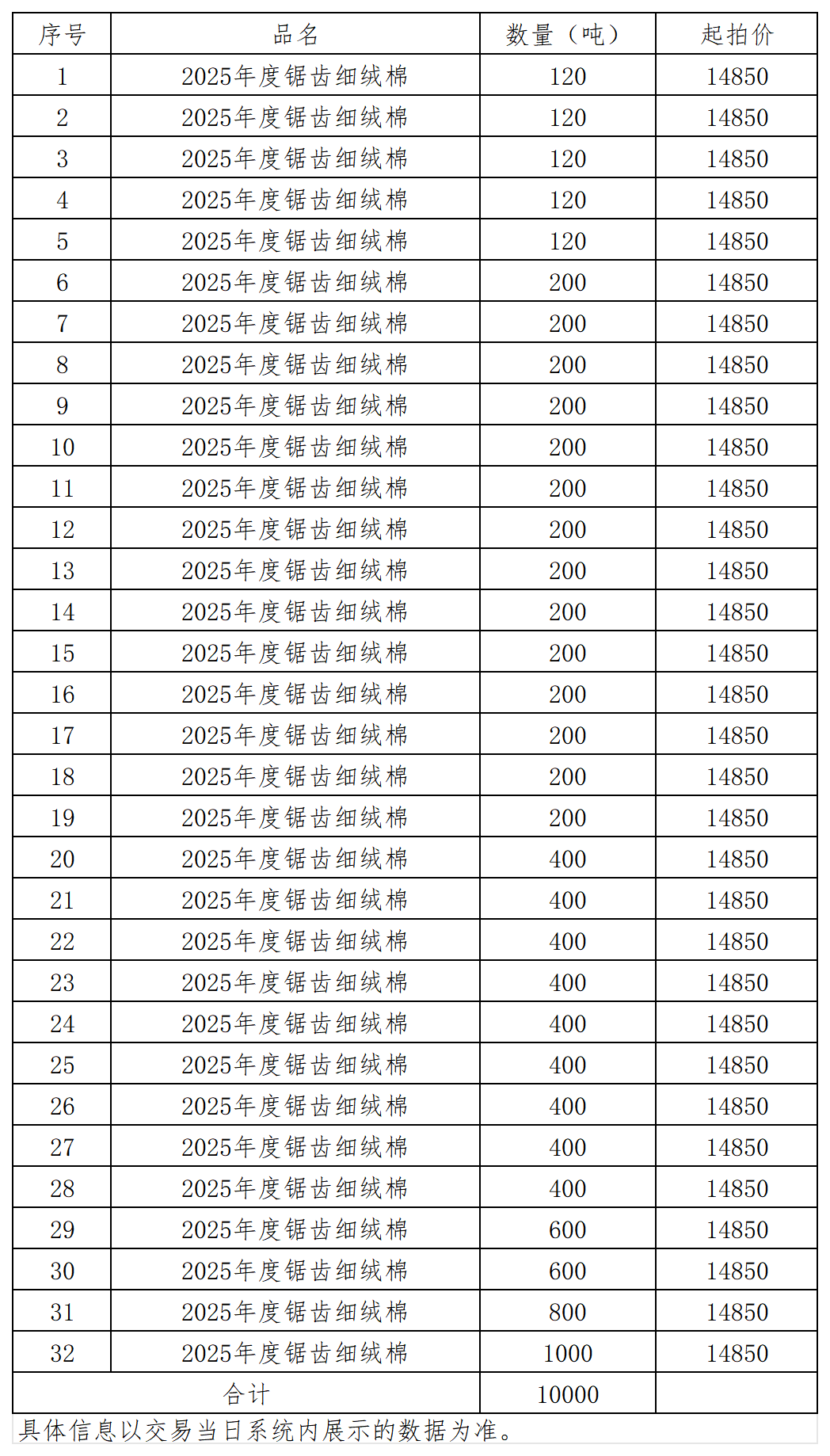 根据《关于发布2025年中棉集团商品棉竞买交易专场相关事项的通知》规定,现将12月19日商品棉竞买部分交易信息预告如下: