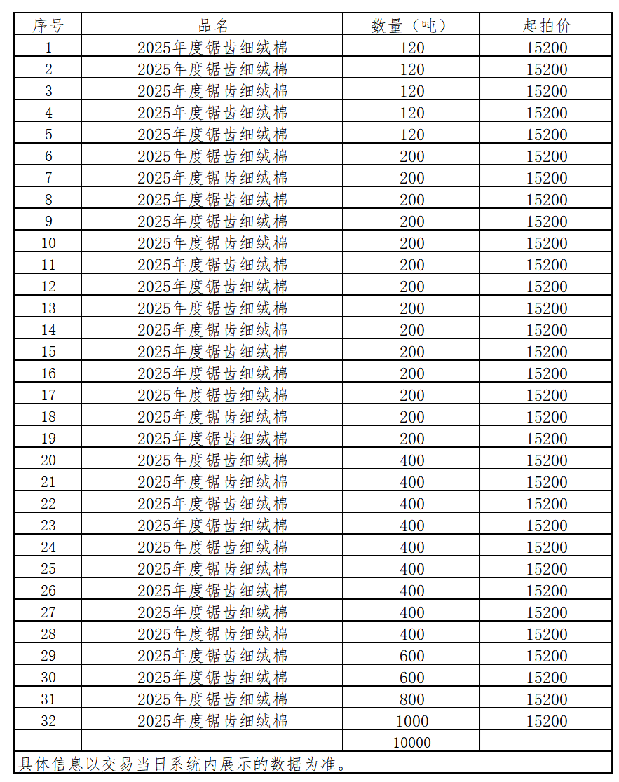 根据《关于发布2025年中棉集团商品棉竞买交易专场相关事项的通知》规定,现将1月15日商品棉竞买部分交易信息预告如下: