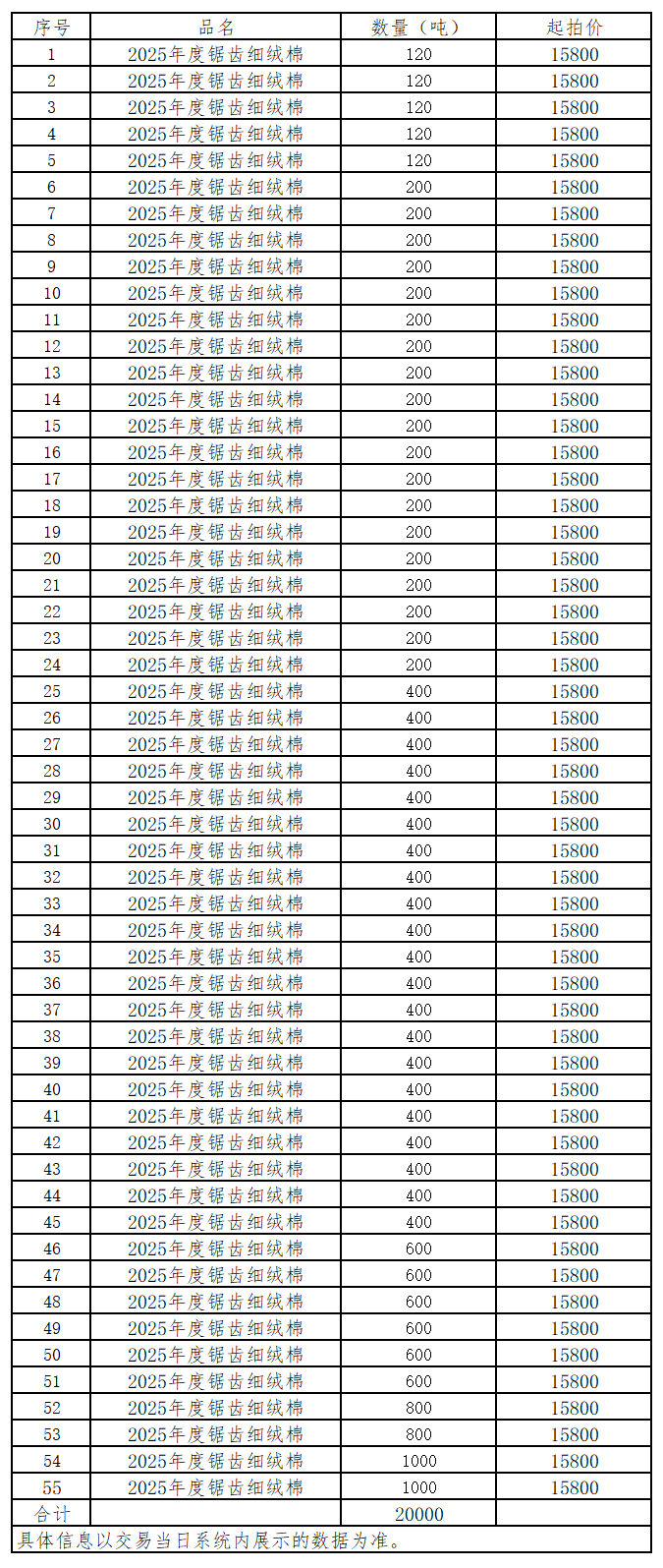 根据《关于发布2025年中棉集团商品棉竞买交易专场相关事项的通知》规定,现将2月2日商品棉竞买部分交易信息预告如下:
