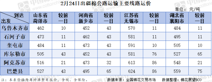出疆棉公路运输价格指数(2026.02.24)