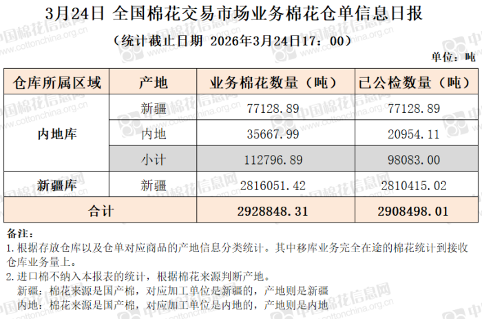 【仓单日报】CNCE业务棉花信息(3.24)