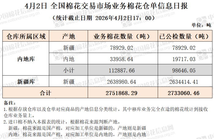 【仓单日报】CNCE业务棉花信息(4.2)